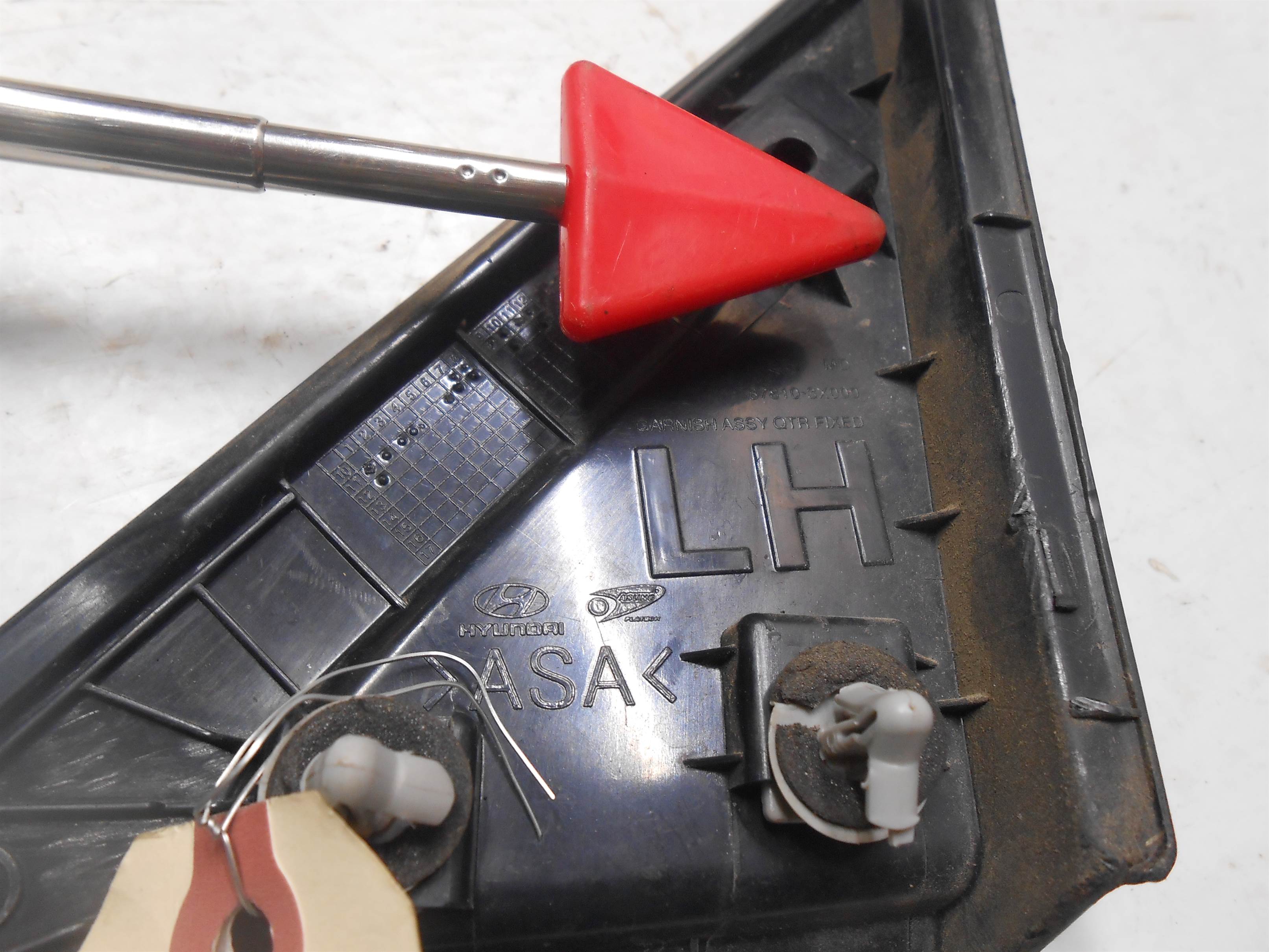 Notes about this item: 2012 Hyundai Elantra Exterior Rear Left Driver Corner Triangle SCUFFS SUN FADED black dirty scratches tabs bent