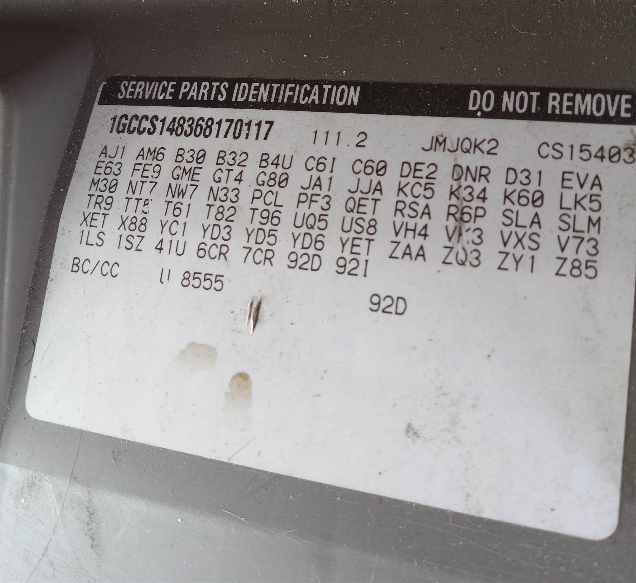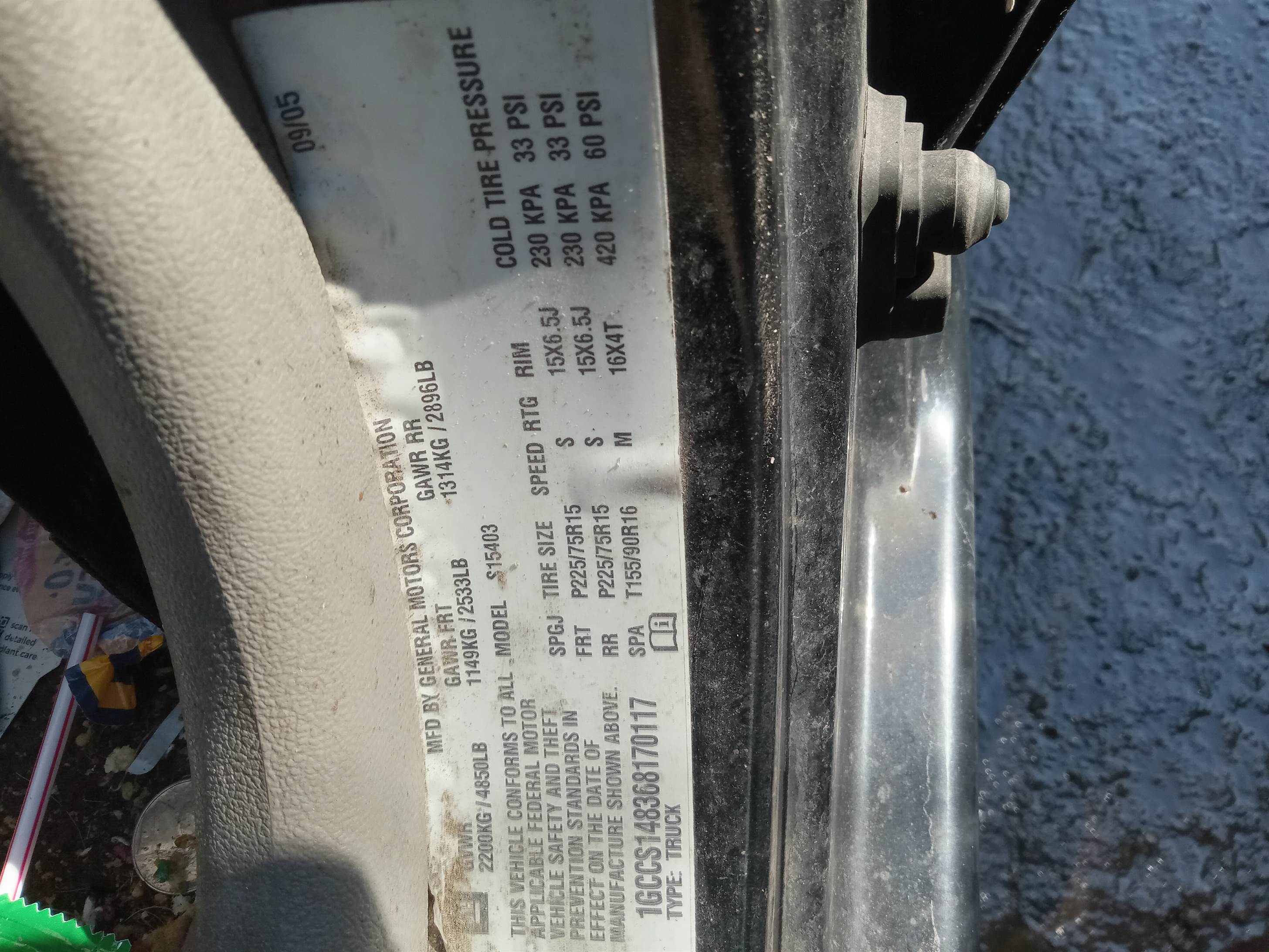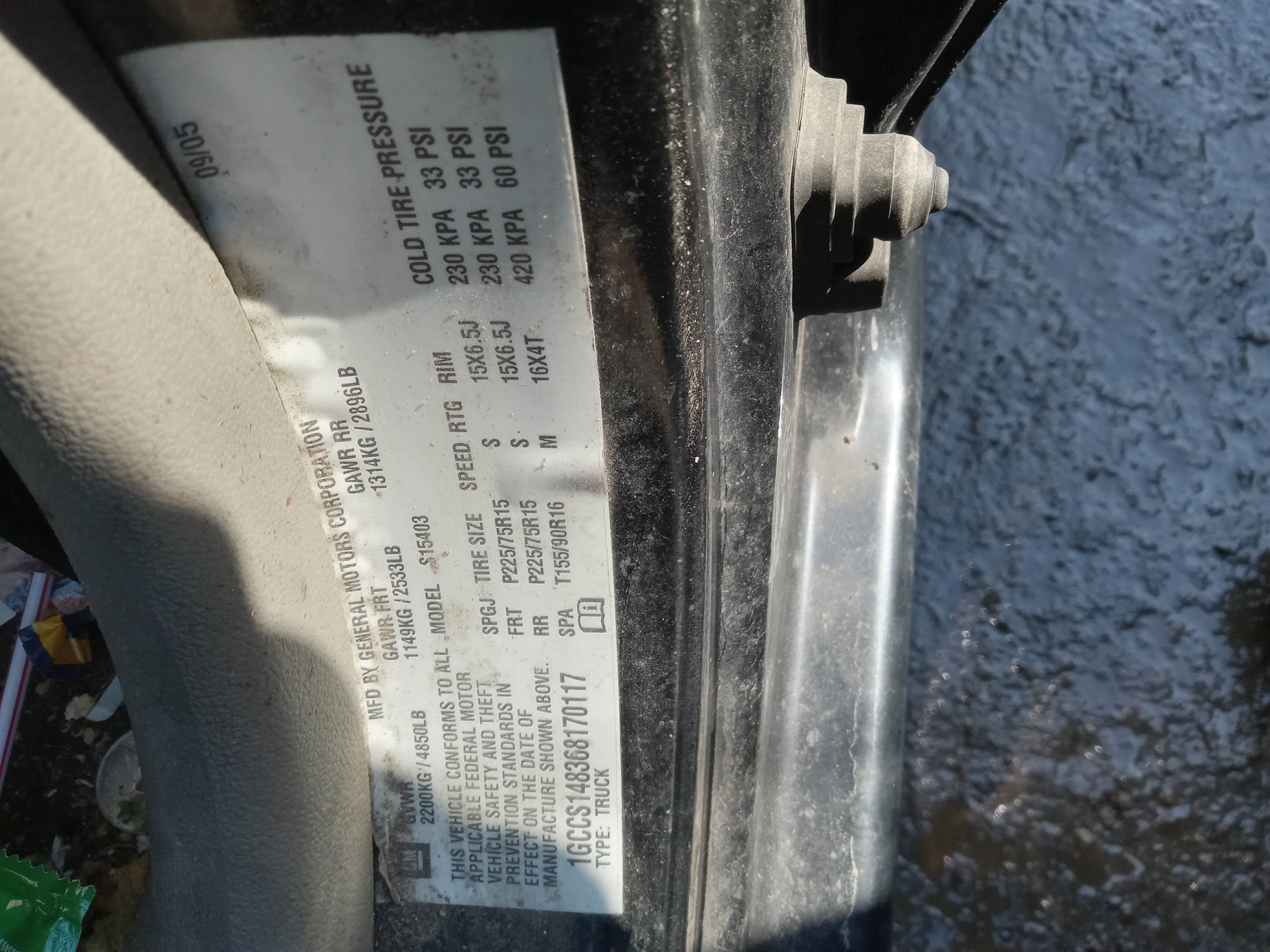 vehicle identification # (VIN): 1GCCS148368170117