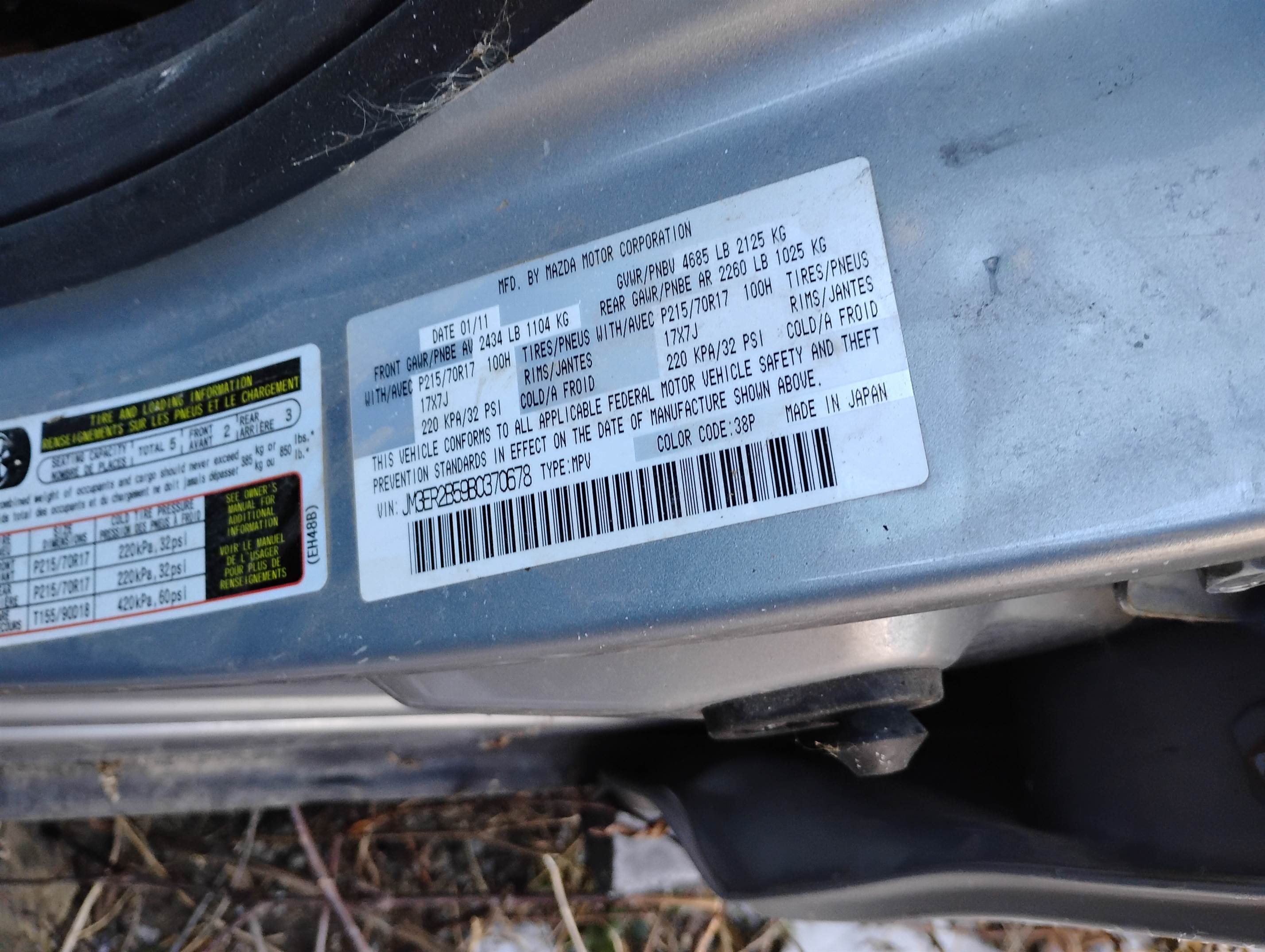 vehicle identification # (VIN): JM3ER2B59B0370678